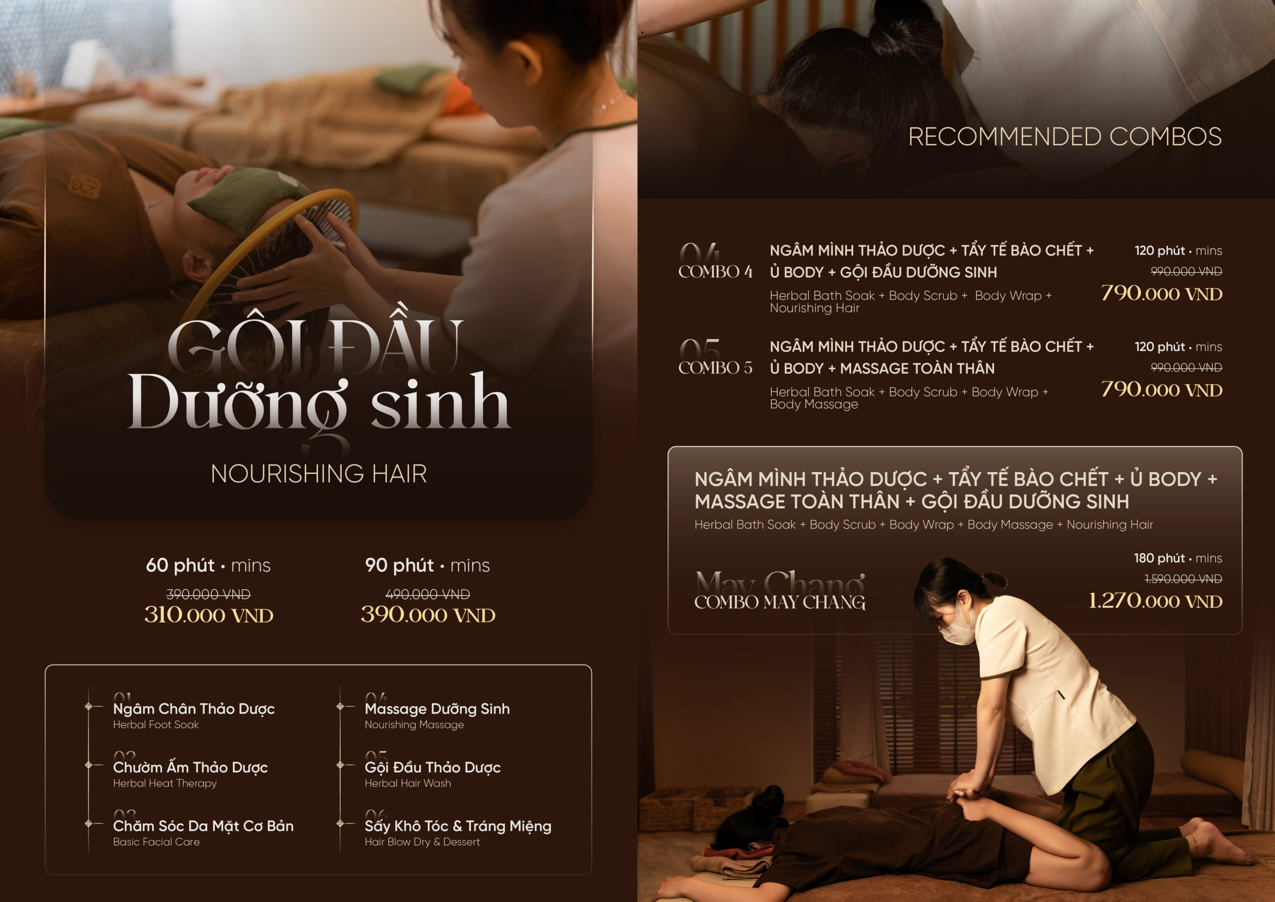 Khám phá trọn vẹn hành trình thư giãn với liệu trình chườm ấm, ngâm thảo dược và massage dưỡng sinh tại May Chang Spa
